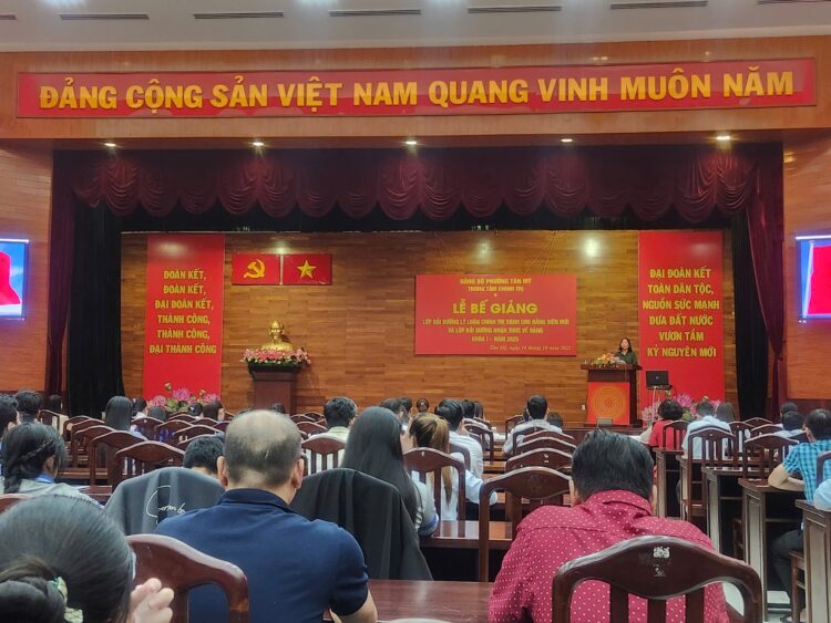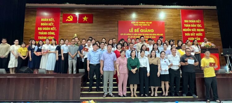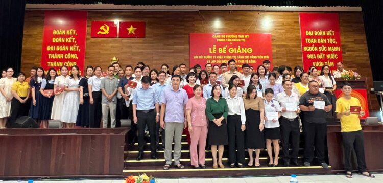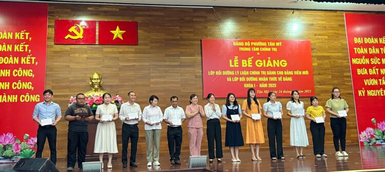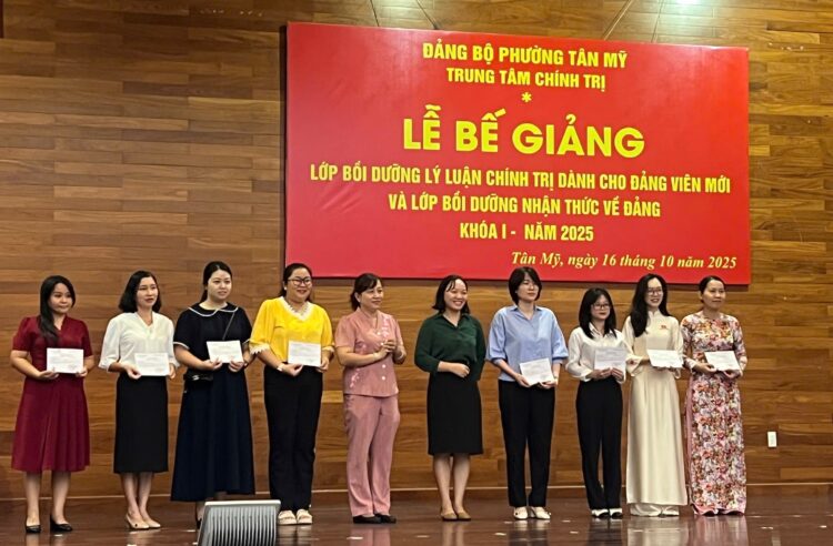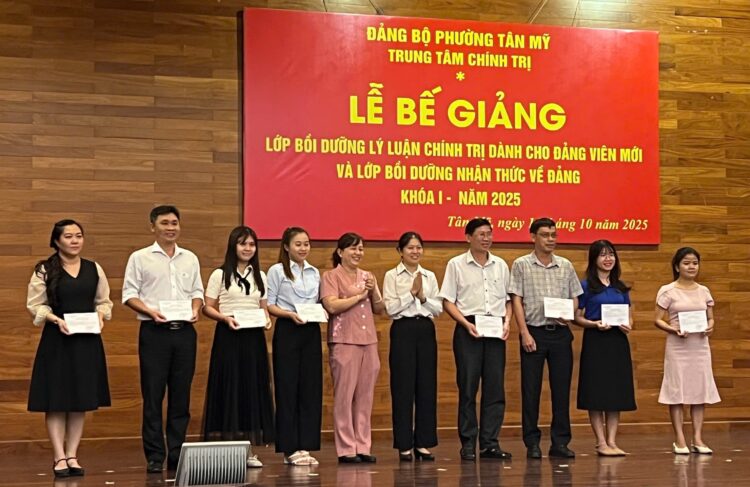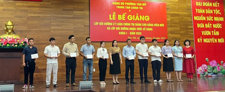 Cụ thể, sáng ngày 16/10/2025, tại Trung tâm Chính trị Đảng bộ phường Tân Mỹ, đã long trọng diễn ra Lễ bế giảng lớp Bồi dưỡng lý luận chính trị dành cho Đảng viên mới và lớp Bồi dưỡng nhận thức về Đảng khóa I năm 2025. Tham dự buổi lễ có đại diện lãnh đạo Đảng ủy các phường Tân Mỹ, Tân Hưng, Tân Thuận…,cùng các đồng chí trong Trung tâm Chính trị, cấp ủy chi bộ cơ sở và toàn thể học viên hai lớp học. Sự hiện diện của các đồng chí lãnh đạo, giảng viên và học viên đã góp phần tạo nên không khí trang trọng, ấm cúng nhưng cũng đầy ý nghĩa chính trị.
