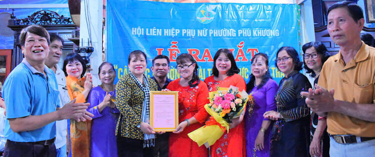 Chị Nguyễn Thị Thùy Dương- Phó Chủ tịch Ủy ban Mặt trận tổ quốc, Chủ tịch Hội Liên hiệp Phụ nữ phường Phú Khương, tỉnh Vĩnh Long trao quyết định thành lập câu lạc bộ