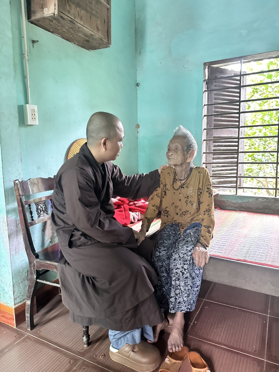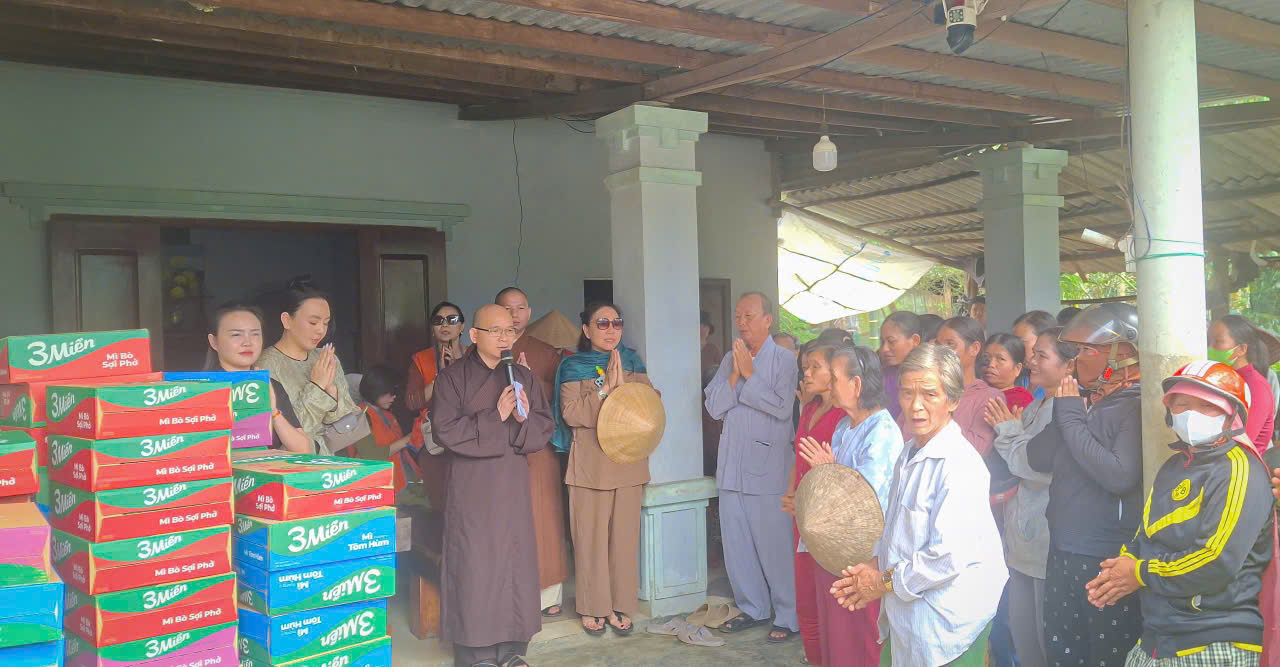 Đoàn đã trao đến tận tày bà con vùng lũ, bị thiệt hại nặng nề sau cây bão số 12 và 13 vừa qua. Trong đó, đoàn đã đến đảnh lễ và cúng dường các ngôi tam bảo như: Chùa Dưỡng Mong, chùa Quy Lai, Chùa làng Thanh Lương, chùa Phước Lâm, chùa làng Thuận Hoà, Tổ đình Vạn Phước…