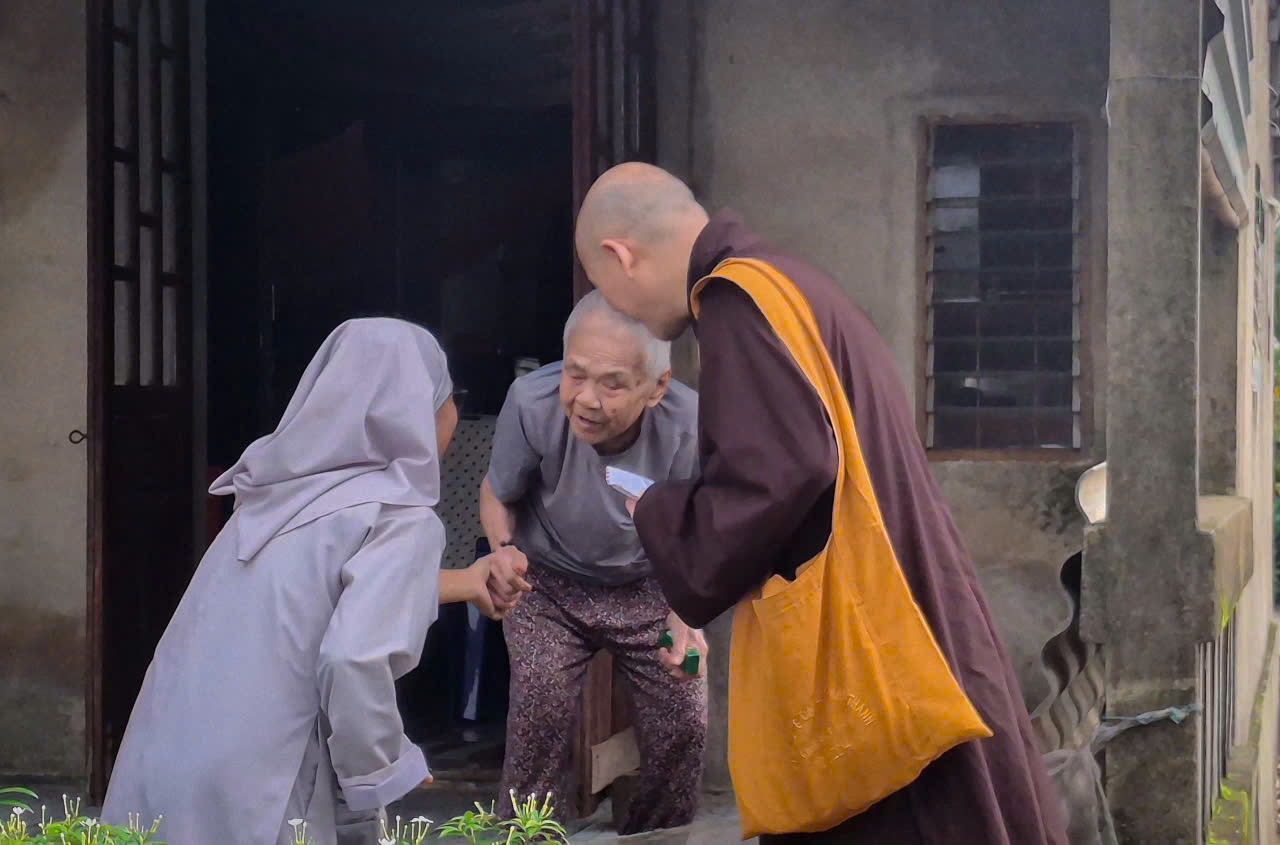 Thượng  toạ  Thích  Chỉnh  Độ  – Trụ  trì  chùa  Pháp  Vân  tận  tay  thăm  hỏi  và  trao  quà  cho  bà  con  bị  ảnh  hưởng  nặng  nề  do  cây  bão  số  12 và  13 tại  Tp.Huế