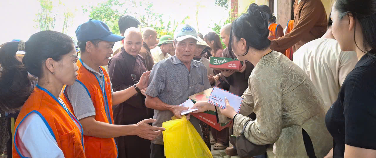 Đoàn  từ  thiện đã có những hỗ trợ thiết thực cho bà con trong công tác khắc phục hậu quả sau bão với  những phần quà là nhu yếu phẩm thiết yếu và tiền mặt.