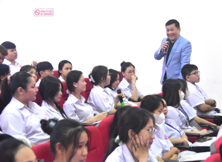 Sinh viên tích cực tham gia thảo luận, trình bày quan điểm và phản hồi trực tiếp trong buổi đào tạo