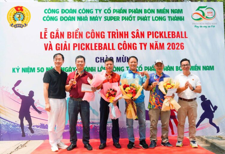 Hướng tới kỷ niệm 50 năm thành lập Công ty Cổ phần Phân bón Miền Nam(19/4/1976 19/4/2026), Công đoàn Công ty đã phối hợp với Nhà máy Super Phốt phát Long Thành tổ chức Lễ gắn biển công trình “Sân Pickleball” tại khu cư xá Nhà máy. Đây là công trình có ý nghĩa thiết thực, góp phần nâng cao đời sống văn hóa, tinh thần, rèn luyện sức khỏe cho người lao động, đồng thời thể hiện sự quan tâm của lãnh đạo doanh nghiệp và tổ chức Công đoàn đối với đội ngũ cán bộ, công nhân viên.