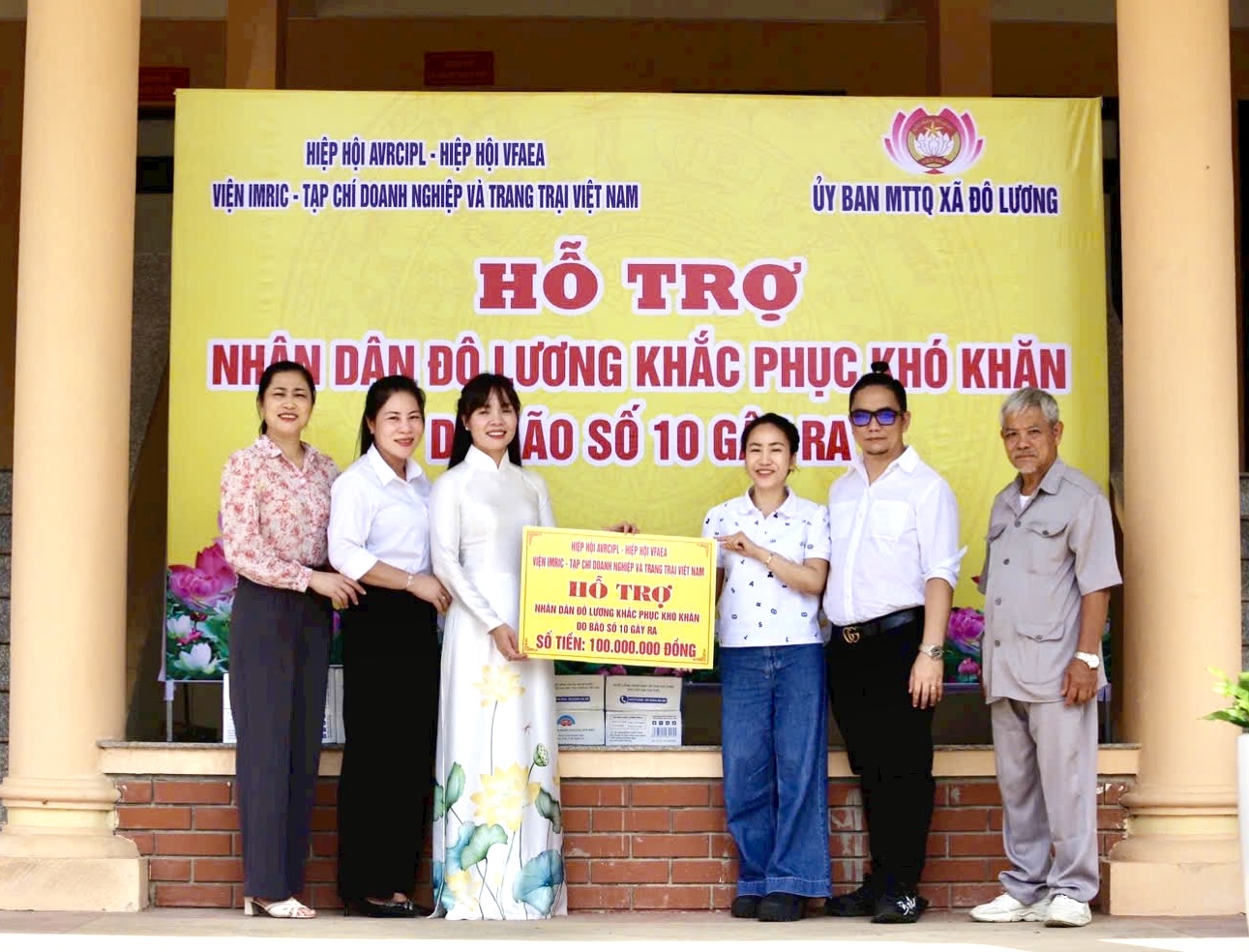 Ngay từ khi mưa bão gây ngập lụt, Hiệp hội AVRCIPL; Hiệp hội VCCDA; Viện IMRIC; Viện IRLIE đã huy động cán bộ, hội viên, doanh nghiệp thành viên đã tích cực kêu gọi ủng hộ bà con bị ảnh hưởng bão lũ, Với tinh thần “nhường cơm sẻ áo”, Tình người còn được lan tỏa mạnh mẽ từ các phường lân cận. Các tổ chức chính trị – xã hội đã trực tiếp đến UBND xã Đô Lương, tỉnh Nghệ An để trao tặng hỗ trợ bà con 100.000.000VND.