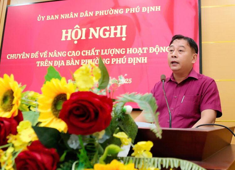 Trong phần phát biểu chỉ đạo, đồng chí Phạm Ngọc Muôn – Bí thư Đảng uỷ – Chủ tịch hội đồng nhân dân Phường Phú Định, nhấn mạnh: “Hôm nay, Đảng ủy phường Phú Định rất hoan nghênh việc tổ chức Hội nghị chuyên đề về nâng cao chất lượng y tế trên địa bàn phường. Đây là hoạt động thiết thực, góp phần cụ thể hóa chủ trương của Đảng và Nhà nước về chăm sóc, bảo vệ sức khỏe nhân dân. Đồng thời, đề nghị ngành y tế phường, các ban ngành, đoàn thể và khu phố tiếp tục tăng cường phối hợp, đẩy mạnh tuyên truyền, nâng cao nhận thức người dân về phòng bệnh, chăm sóc sức khỏe ban đầu, cũng như giữ gìn vệ sinh môi trường. Đồng thời, cần phát huy tinh thần trách nhiệm, đạo đức nghề nghiệp, phục vụ nhân dân tận tâm, chu đáo. Cùng với đó, Đảng ủy phường Phú Định sẽ luôn quan tâm, tạo điều kiện thuận lợi để công tác y tế ngày càng phát triển, góp phần xây dựng phường ngày càng văn minh, an toàn và khỏe mạnh.