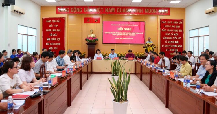 Tại hội nghị, Bác sĩ Nguyễn Thị Ngọc Thi – Trưởng trạm Y tế phường Phú Định đã trình bày tham luận về thực trạng công tác chăm sóc sức khỏe ban đầu tại địa phương. Bác sĩ nhấn mạnh những kết quả nổi bật như tỷ lệ tiêm chủng đạt trên 95%, công tác phòng chống dịch bệnh được duy trì thường xuyên, nhưng cũng nêu rõ những khó khăn về cơ sở vật chất, trang thiết bị. Bác sĩ Ngọc Thi đề xuất cần tăng cường đầu tư trang thiết bị khám chữa bệnh, mở các lớp tập huấn chuyên môn cho cán bộ y tế cơ sở và đẩy mạnh truyền thông giáo dục sức khỏe trong cộng đồng.