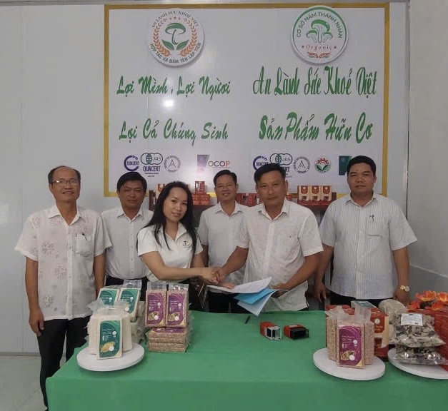 Cụ thể, mới đây – HTX Thanh Nhàn gạo ST25 Hữu Cơ; HTX Tân Lập Tiến nấm hữu cơ (toạ lạc tại xã Nhơn Hòa Lập) đã diễn ra lễ ký kết họp tác đại lý độc quyền phân phối gạo hữu cơ và nấm với Công Ty TNHH Lương Thực Thực Phẩm Thịnh Phú…Tham dự có các ông Lê Văn Nhãn – Bí thư Đảng Ủy, Chủ tịch Hội đồng Nhân dân xã; ông Võ Minh Dương – Phó bí thư thường trực Đảng ủy;ông Ngô Phước Xuyên – Ủy viên Ban thường vụ, Phó chủ tịch Hội đồng nhân dân xã; ông Đinh Văn Định – Phó chủ tịch UBND xã Nhơn Hòa Lập…