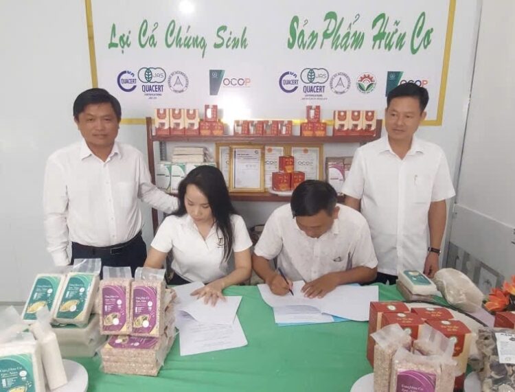 Bên cạnh đó, hai HTX và doanh nghiệp còn hỗ trợ cho các thành viên về kỹ thuật canh tác không sử dụng thuốc hóa học, hướng dẫn sử dụng các chế phẩm hữu cơ trong các khâu chăm sóc lúa, để tạo ra sản phẩm sạch, thực hiện mô hình sản xuất lúa gạo hữu cơ, nâng cao giá trị hạt gạo, nâng cao giá thành sản phẩm và tăng thêm thu nhập cho thành viên. Qua đó, thu hút thêm thành viên vào HTX có đầu vào, đầu ra ổn định, có được sự hỗ trợ, hỗ trợ liên kết đầu ra để các thành viên cũng an tâm trong sản xuất. Đây còn là mối liên kết giữa các đơn vị thường xuyên tổ chức tập huấn các chương trình sản xuất lúa hữu cơ, sản xuất lúa sạch.