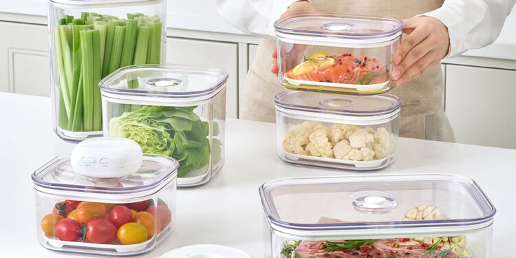 Bộ sản phẩm LocknLock Maestro 7 món với máy hút chân không giúp bảo quản thực phẩm tươi mới đến 50 ngày