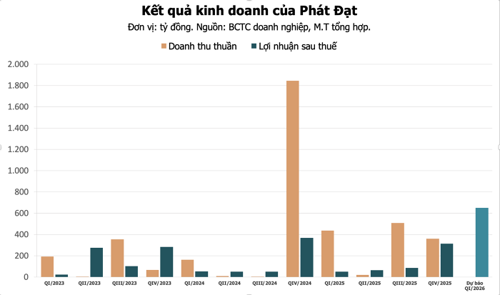 Tương tự, Phát Đạt được dự báo ghi nhận lợi nhuận khoảng 650 tỷ đồng trong quý I (trong khi cùng kỳ lãi 51 tỷ đồng), chủ yếu nhờ chuyển nhượng cổ phần tại CTCP BĐS Đầu tư và Phát triển Cao ốc Thiên Long – đơn vị sở hữu dự án Thuận An 1, và ghi nhận giá trị thanh toán đợt 1 khoảng 1.900 tỷ đồng.