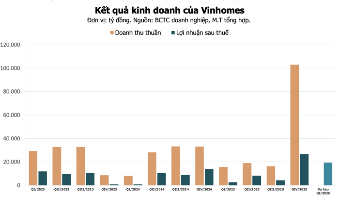 Trong năm 2026, Vincom Retail dự kiến tăng tỷ lệ lấp đầy tại tất cả các phân khúc, đặc biệt là Vincom Plaza, từ đó hỗ trợ lợi nhuận. Tuy nhiên, kế hoạch mở bán và bàn giao các sản phẩm bất động sản đã được dời sang năm 2027. Lợi nhuận 2026 dự kiến đi lùi từ mức nền cao năm 2025.