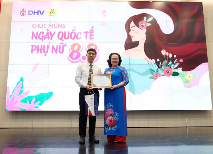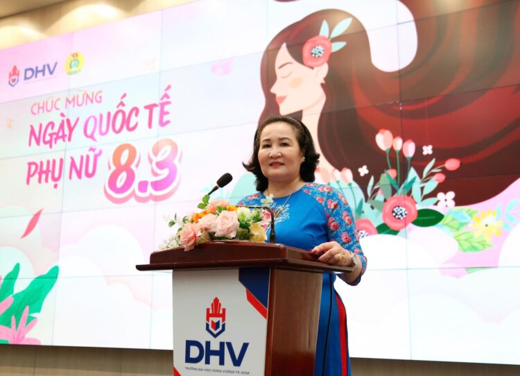 Phát biểu tại chương trình, đại diện Ban Giám hiệu Trường Đại học Hùng Vương TP.HCM, TS. Nguyễn Thị Mỹ Dung – Phó Hiệu trưởng ghi nhận và biểu dương những đóng góp tích cực của đội ngũ nữ cán bộ, giảng viên, viên chức, người lao động trong quá trình xây dựng và phát triển nhà trường. TS. Nguyễn Thị Mỹ Dung khẳng định, đội ngũ nữ cán bộ, giảng viên không chỉ hoàn thành tốt nhiệm vụ chuyên môn mà còn có nhiều đóng góp quan trọng trong công tác quản lý, nghiên cứu khoa học và hoạt động đoàn thể; đồng thời nhấn mạnh vai trò của phụ nữ trong việc xây dựng môi trường giáo dục nhân văn, hiện đại. Ban Giám hiệu nhà trường sẽ tiếp tục quan tâm, tạo điều kiện thuận lợi để đội ngũ nữ cán bộ phát huy năng lực, đóng góp hiệu quả vào sự phát triển bền vững của nhà trường.