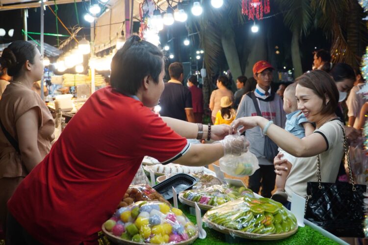 Bước chân vào khu Chợ phiên Xứ Dừa, du khách như trở về miền ký ức thân quen của làng quê Nam Bộ. Mái lá dừa nghiêng nghiêng, những gánh hàng rong mộc mạc, mùi bánh dân gian thơm lừng quyện trong hương dừa ngọt dịu gợi nhớ những phiên chợ quê xưa cũ. Ở đó, không chỉ có bánh trái, kẹo dừa thủ công, nước dừa mát lành hay gỏi củ hủ dừa dân dã, mà còn có cả sự ân cần trong từng lời chào, nụ cười hiền hòa của người bán là “đặc sản” làm nên tình người Xứ Dừa.