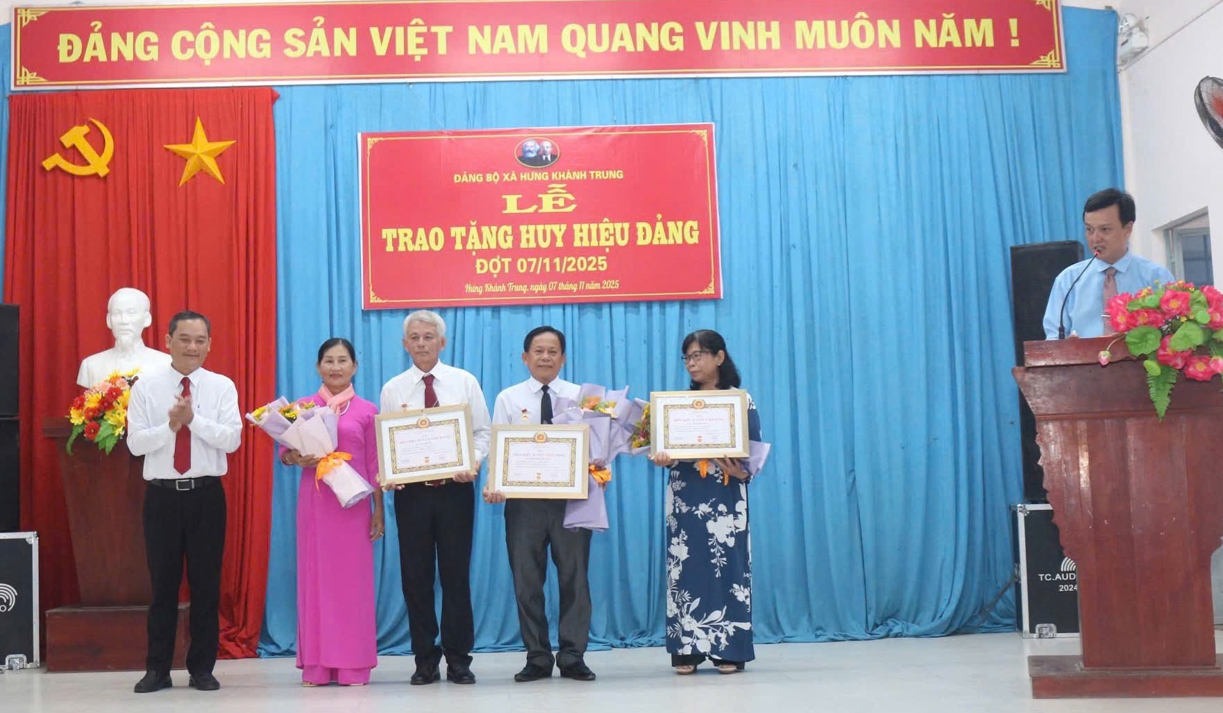 Mới đây, trong không khí phấn khởi hướng về kỷ niệm 108 năm Cách mạng Tháng Mười Nga (07/11/1917 – 07/11/2025), vào sáng ngày 07/11/2025 – Đảng bộ xã Hưng Khánh Trung đã long trọng tổ chức Lễ trao Huy hiệu Đảng đợt 07/11/2025 cho 10 đảng viên đủ niên hạn.